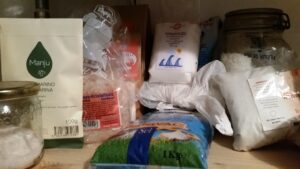 Als Grundzutat benötigst du Vollsalz. Natürlich gibt es auch hier viele verschiedene Sorten, ich alleine habe schon eine ganze Menge davon zuhause: