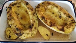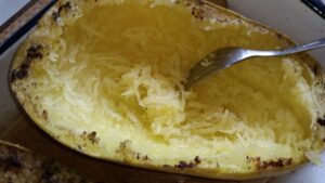 Ich zeige dir die herrlichsten Spaghetti, die einfach zu machen, gesund UND ausgesprochen lecker sind: Falls du sie nicht in deinem Garten findest, dann schau doch einmal im Bio-Markt nach, ob du dort einen SPAGHETTI-KÜRBIS siehst.